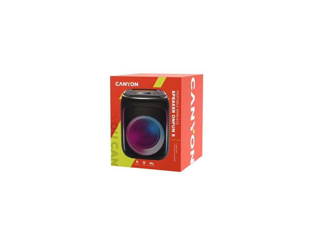 Canyon OnFun 5, PBSP-5, prenosný Bluetooth Párty reproduktor s ekvalizérom a RGB osvetlením CNE-PBSP5