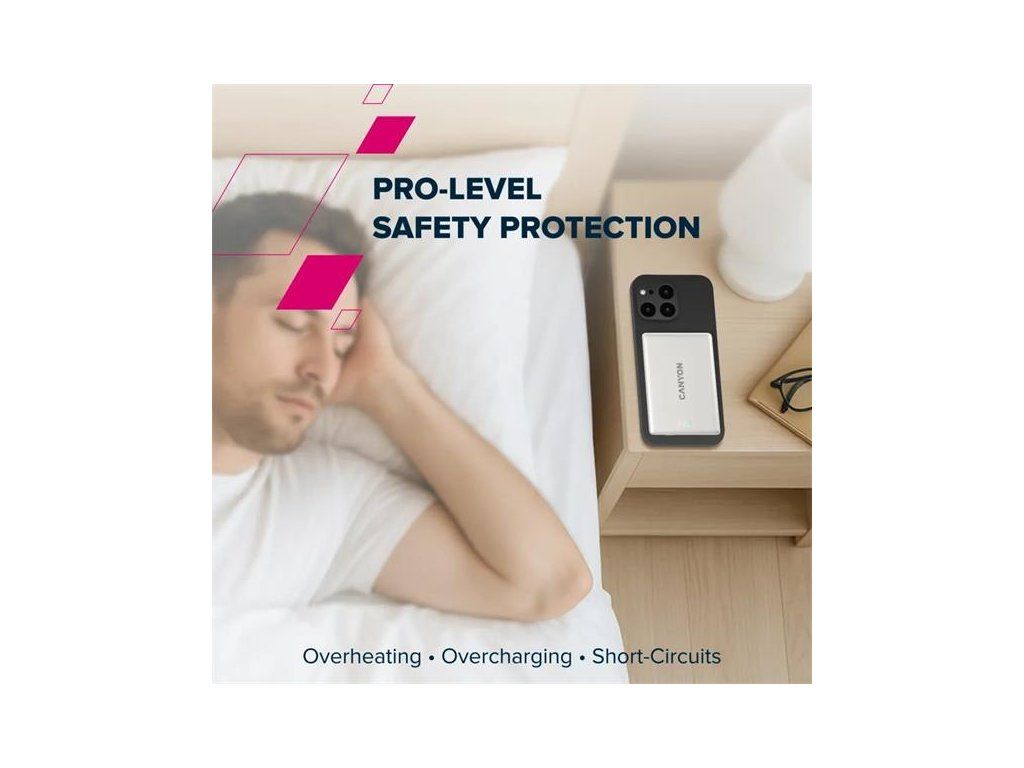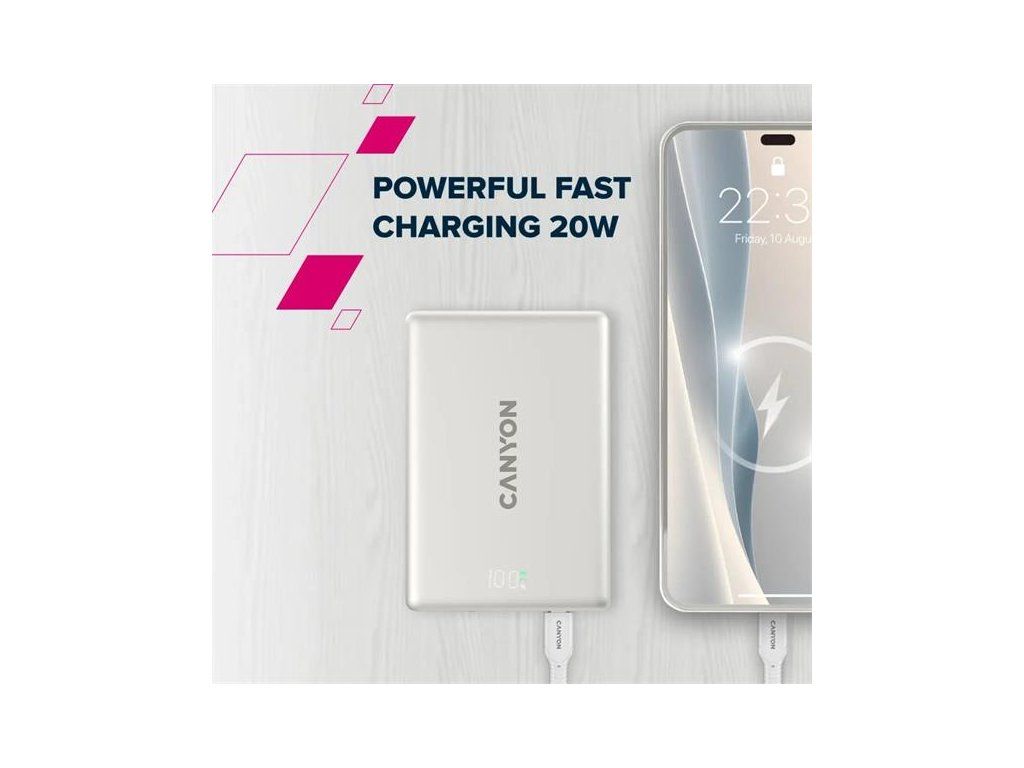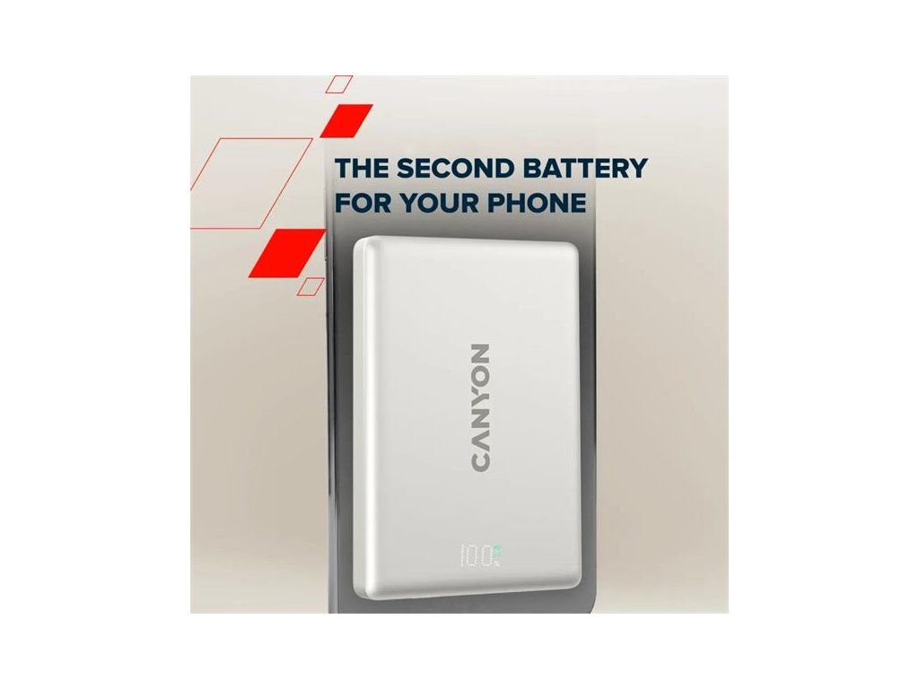 Canyon OnPower 500, Powerbank, 5.000 mAh, MagSafe, 20W USB-C, 15W Bezdrôtové nabíjanie, displej, čierna CNS-CPB500B