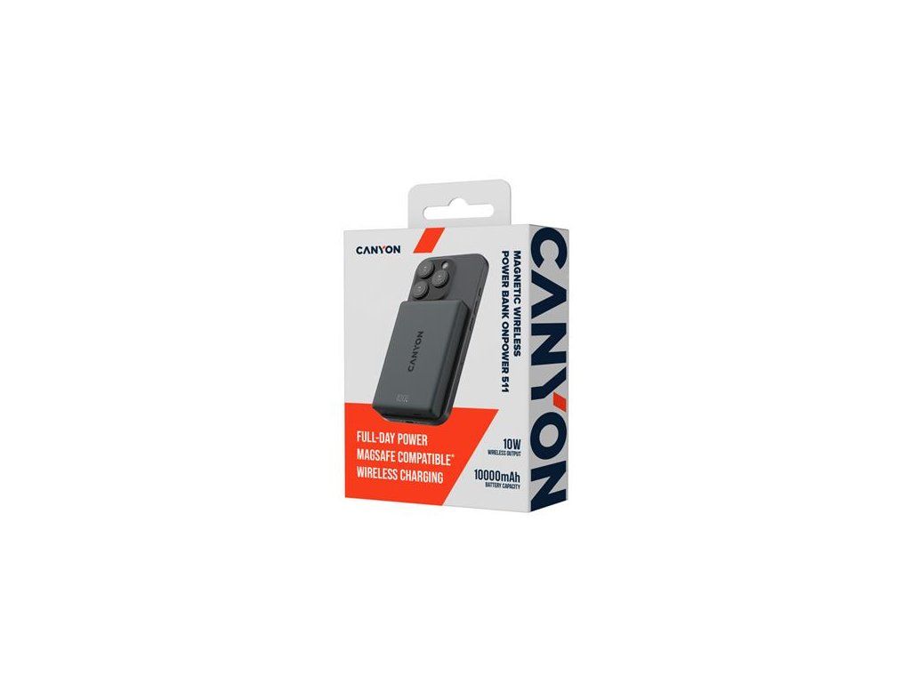 Canyon OnPower 511, Powerbank, 10.000 mAh, MagSafe, 20W USB-C, 15W Bezdrôtové nabíjanie, displej, čierna CNS-CPB511B