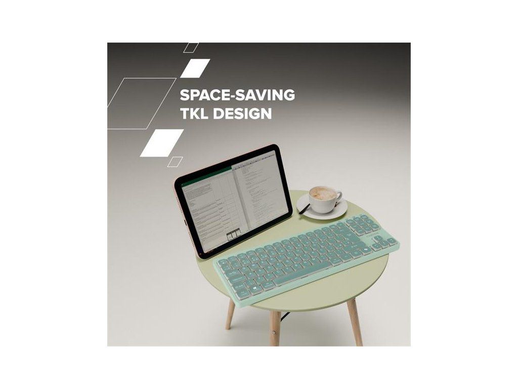 Ak hľadáte klávesnicu s uspokojivou hmatovou spätnou väzbou mechanických spínačov, ale bez veľkých rozmerov tradičných modelov, OnType 10 je tá pravá. Jej nízkoprofilový dizajn udržuje ruky v pohodlí počas dlhého písania a zachováva ostrú odozvu mechanických klávesov, ktorými sú známe. Rozloženie bez klávesov (TKL) znamená, že získate kompaktnú klávesnicu, ktorá šetrí miesto na stole bez toho, aby ste museli obetovať klávesy. Je ideálna pre zostavy, kde sa počíta každý centimeter.