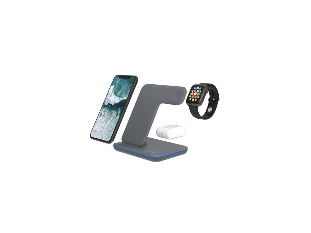 Canyon WS-303, 3v1, bezdrôtová Qi nabíjacia stanica pre 3 zariadenia simultánne, šedá CNS-WCS303DG