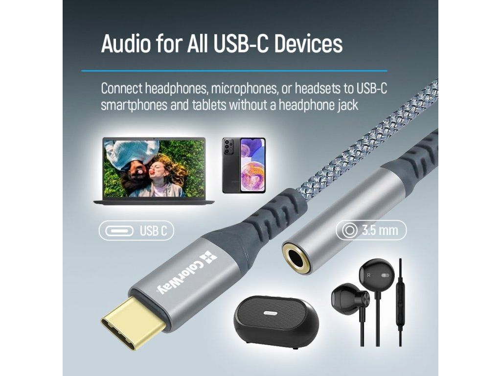 Tento praktický adaptér umožňuje připojit sluchátka, headsety, mikrofony a další audio zařízení s 3,5mm jack konektorem k smartphonům, tabletům a dalším zařízením s USB-C portem. Představuje ideální řešení pro moderní zařízení bez klasického audio výstupu.