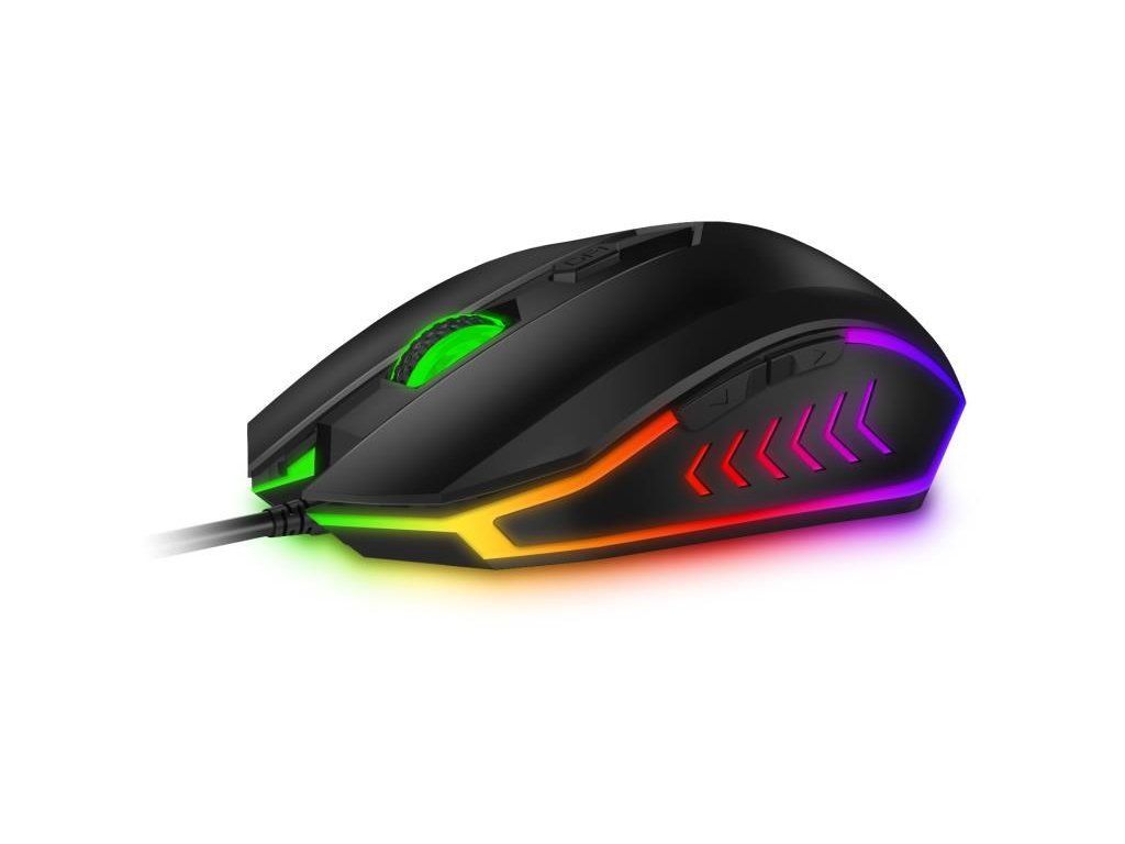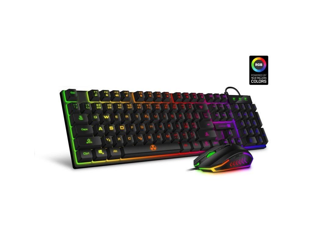 Profesionálny gamingový set klávesnice a myši Battle series pre hráčov počítačových hier v českom a slovenskom rozložení s RNBW podsvietením a trojstupňovou reguláciou intenzity podsvietenia klávesnice.