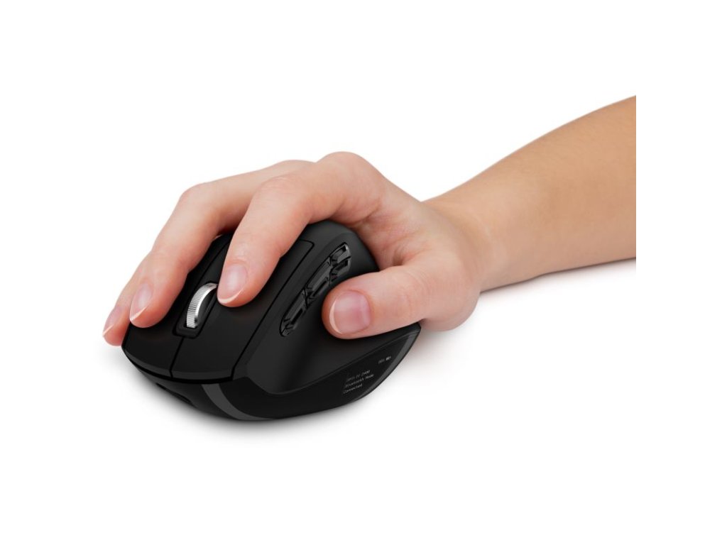 Semi-vertikálna ergonomická optická bezdrôtová myš FOR HEALTH Semi-Verti DualMode s LCD displejom BLACK je špecificky navrhnutá ako prevencia proti syndrómu karpálneho tunela. Ponúka možnosť pripojenia na dva počítače vďaka technológii DualMode (Bluetooth 5.0 + 2,4 GHz wireless). DPI rozlíšenie až 2400 DPI. 10 tlačidiel vrátane precízneho otočného kolieska. Samozrejmosťou je USB Nano prijímač a dodávaný nabíjací kábel.
