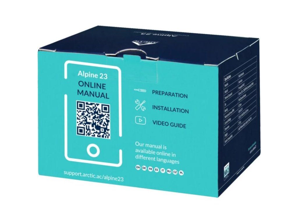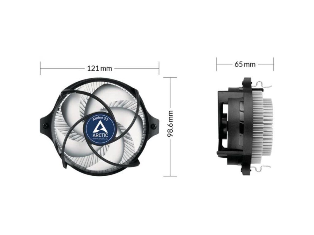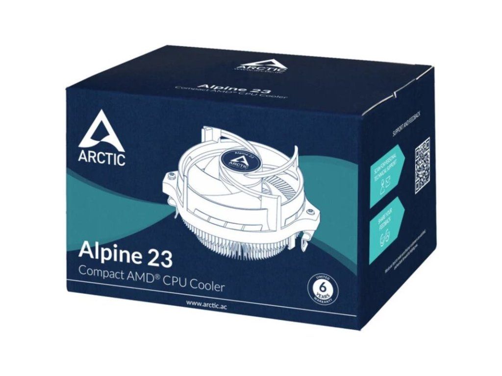 ARCTIC Alpine 23, Chladič na procesor (ACALP00035A) - Výkonný chladič CPU, zabudovaný ventilátor: veľkosť 90 mm, otáčky 100 - 2000 RPM (PWM), úroveň hlučnosti až 0,3 son, konektor 4-pin; kompatibilný so socketom AMD AM4 a AM5