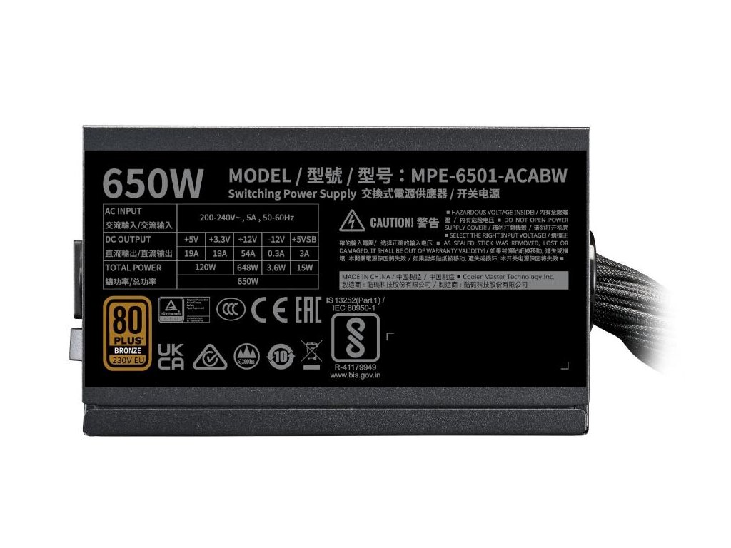 Cooler Master zdroj MWE Bronze 650W V3, 120mm, 80+ Bronze MPE-6501-ACABW-3BEU
