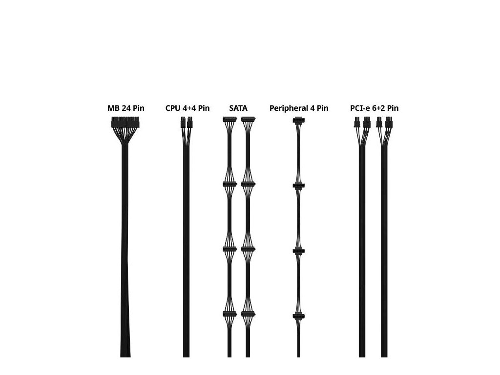 | Konektory: | 8pin CPU 1x, 8pin CPU 2x, PCIe 6-pin, PCIe 8-pin, SATA 15-pin, Molex |