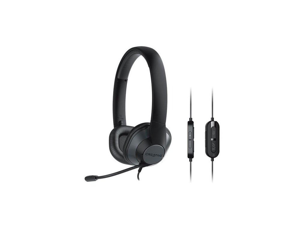 Creative HS-720 V2 má vše pro pracovní telefonáty: mikrofon s potlačením šumu, odezvu mikrofonu pro kontrolu hlasitosti a integrované dálkové ovládání s tlačítkem ztlumení mikrofonu a příjmu hovoru.