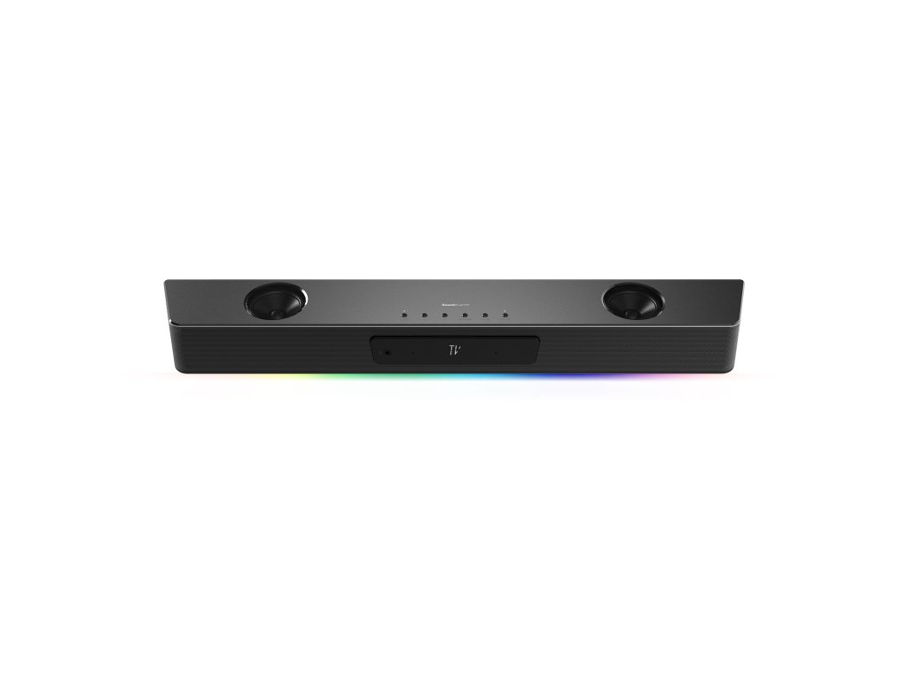 Creative Sound Blaster Katana V2X vícekanálový herní soundbar Super X-Fi s trojitým zesilovačem a kompaktním subwooferem Sound Blaster Katana V2X poskytuje křišťálově čistý a působivý zvuk vyplňující místnost díky 5.1kanálovému přehrávání. Sound Blaster Katana V2X můžete k zařízením připojit několika způsoby, včetně USB-C, HDMI ARC, optického kabelu, kabelu AUX-in a bezdrátového připojení Bluetooth® 5.0. Funguje také na různých platformách, od herních konzolí, jako jsou PS5™, PS4™, Xbox Series X a S a Nintendo Switch™, až po PC, počítače Mac a mobilní zařízení. Konstrukce tří zesilovačů je řízena naším vlastním vícejádrovým DSP. To znamená, že každý ze středotónových měničů, výškových měničů a měničů subwooferu je řízen samostatně, což zajišťuje silnou a působivou reprodukci zvuku na každé frekvenci. Soundbar je také vybaven konstrukcí šasi s dvojitou stěnou, která minimalizuje rušivé vibrace, takže Sound Blaster Katana V2X dokáže bez problémů zprostředkovat naprosto čistý zvuk. Specifikace Měnič: * 2x 19mm výškový * 2x 34mm středový * 1x 133mm basový Výstupní výkon: * soundbar: 50W (2x 5W RMS vysoké tóny/2x 20W RMS střední basy) * subwoofer: 40W * celkový: 90W Kmitočtový rozsah: 50–20000Hz Bezdrátový kodek: SBC Mikrofon: ano (2x) Rozhraní: Bluetooth 5.0, HDMI ARC, optický vstup, vstup AUX, USB-C, výstup SXFI Komunikační dosah BT: až 10m Osvětlení RGB: až 16,8 milionů barev Dálkové ovládání: ano (přehrávání, hlasitost, napájení, režimy ekvalizéru, basy/výšky, párování Bluetooth, programovatelná tlačítka, přepínání zdroje) Napájecí rozhraní: DC-in (22V 2,7A) Barva: černá Rozměry: * soundbar: 600×95×62mm * subwoofer: 116×250×423mm Hmotnost: * soundbar: 1,52kg * subwoofer: 3,3kg Obsah balení: * 1x soundbar Sound Blaster Katana V2X * 1x subwoofer * 1x adaptér AC (GM60-220270-D) * 1x kabel AC (1,5m) * 1x optický kabel (Toslink, 1,5m) * 1x kabel USB typ C na USB typ A (1,2m) * 1x infračervený dálkový ovládač * 1x stručná úvodní příručka * 2x držáky pro montáž na stěnu Záruka: 2 rokyDodatočné parametre