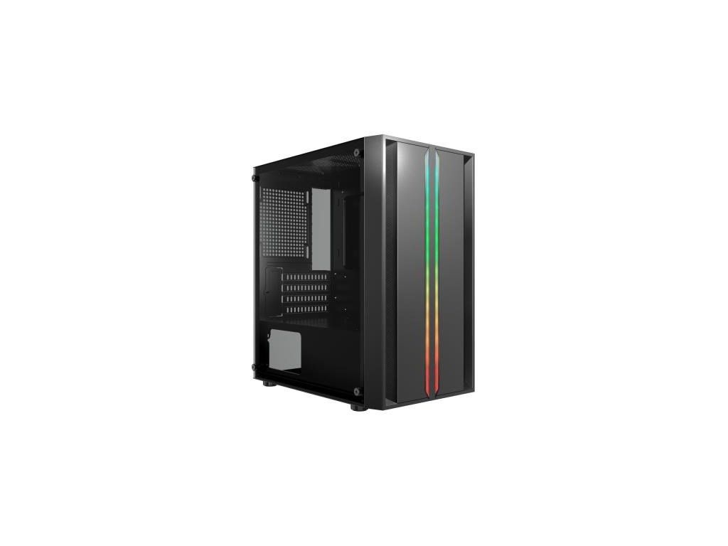 Prevedenie skrine:Midi Tower; Farba skrine:Čierna; Počet pozícií 3.5" (HDD):2; Počet interných pozícií 2.5":2; Vybavenie PC skrinky:Predný Audio panel, Predný USB panel, Priehľadná bočnice