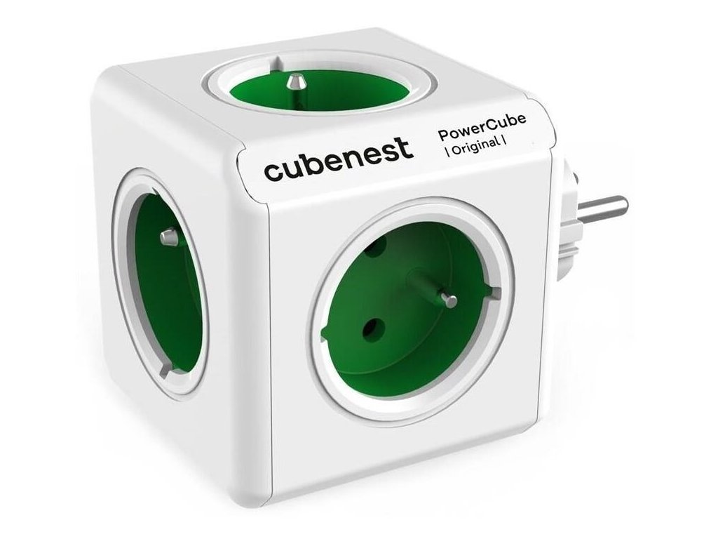 Cubenest Powercube Original, 5× zásuvka, bílá/zelená, dětská pojistka, uzemnění, max. 16A/250V~3680W/50-60Hz PC120GN