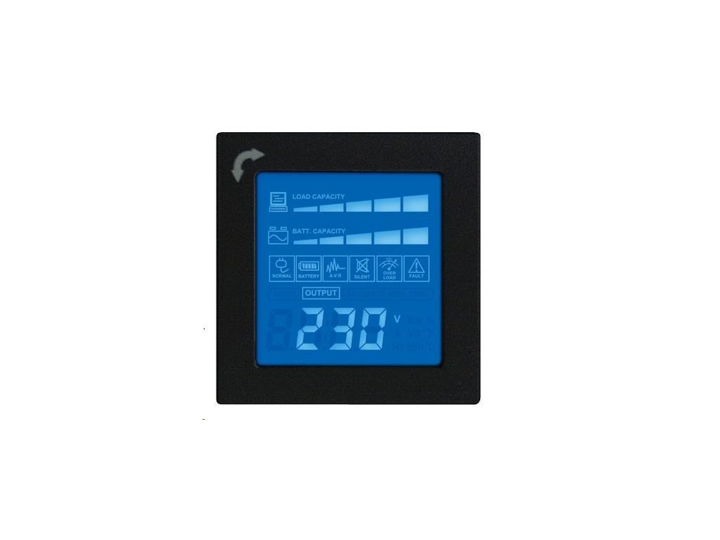 | Multifunkčný LCD displej | Áno - Typ prevádzky , Stav napájania , Stav batérie , Stav zaťaženia , Porucha a varovanie , Viac informácií , Udalosti a záznamy |