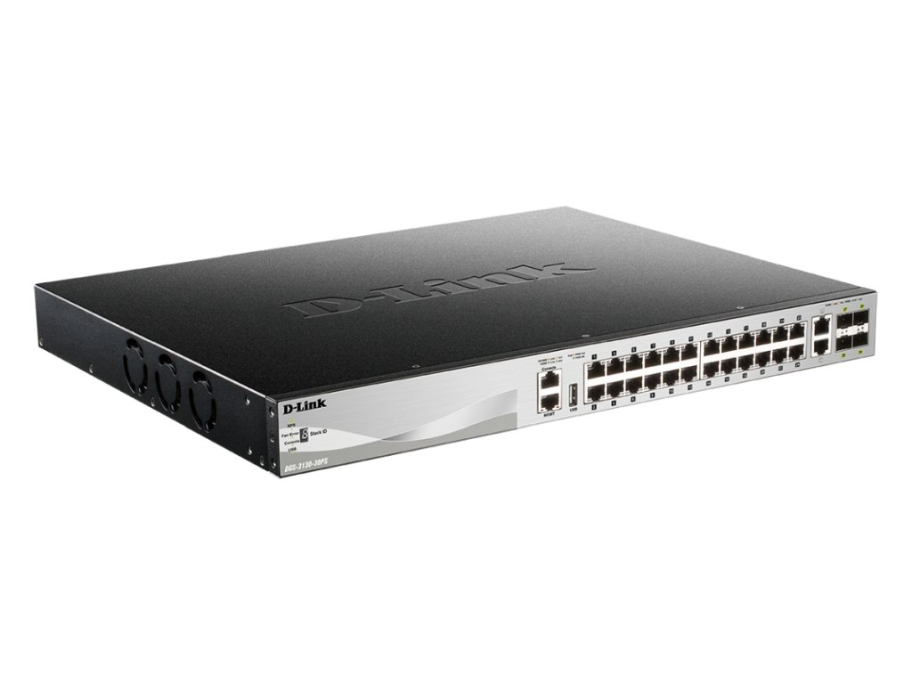 D-Link DGS-3130-30PS L3 Stck. Mng. PoE switch 24x GbE PoE+, 2x 10G RJ-45, 4x 10G SFP+, PoE 370W DGS-3130-30PS/E