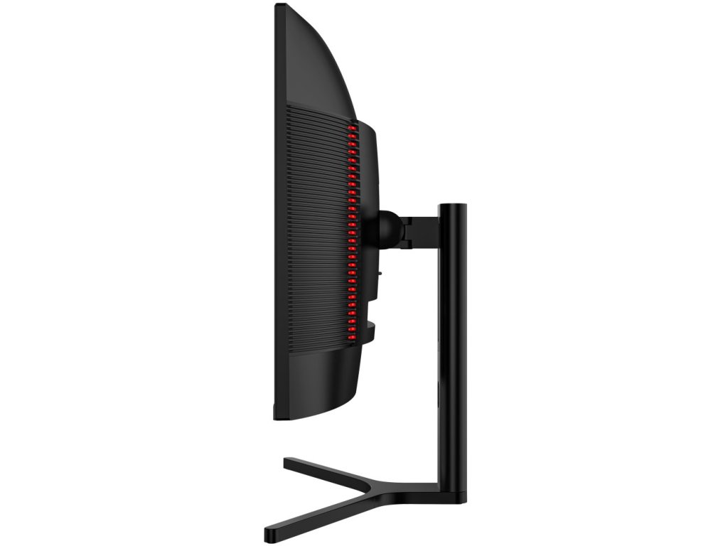 Stojan monitoru umožňuje výškové nastavení v rozsahu 100 mm, náklon -5° až +15° a otáčení -35° až +35°, což zajišťuje optimální nastavení pro každého uživatele. Elegantní černý design s barevným podsvícením zadního krytu dodává hernímu setupu stylový vzhled.