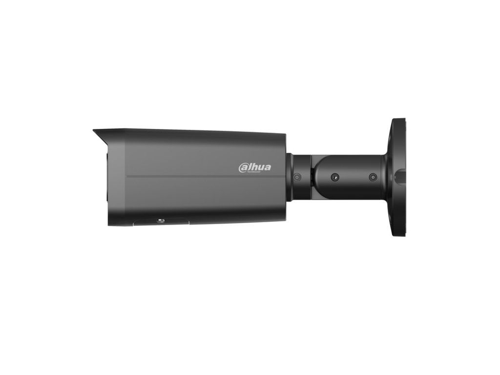 5 Mpx kompaktná IP kamera, exteriérová, Day/Night, IR 80 m, WL 60 m, 1/1.8" 5 Megapixel CMOS, rozlíšenie 2960 x 1668 px @ 1-25/30 fps, citlivosť 0,0009 lx @F1.6, objektív 2,8 mm, uhol záberu H: 108,4°, V: 60°, D: 127,1°; AWB, AI-ISP, BLC, HLC, WDR 120dB, AGC, ROI, 3DNR, SSA, Defog, LDC, Full Color; kompresia H.265 / H.264 / H.264H / H.264B / MJPEG (Sub Stream), RTMP, podpora Smart a AI Codekov, ONVIF kompatibilné; inteligentné funkcie: IVS (Perimeter Protection), Large AI model (Xinghan), SMD 4.0, AcuPick, Face Detection, People Counting, Queue Management, Heat Map, Video Metadata, Smart Search; RJ-45, zabudovaný mikrofón, micro SD karta max. 1 TB, alarm I/O 1/1, audio I/O 1/1, napájanie 12 V DC / PoE+ (802.3at) / ePoE, Dual Power Backup, spotreba max. 15,6 W, pracovná teplota od -40 °C do +60 °C, IP67, IK10 rozmery 238 x 90,7 x 90,7 mm, hmotnosť 0,835 kg, čierna verzia.