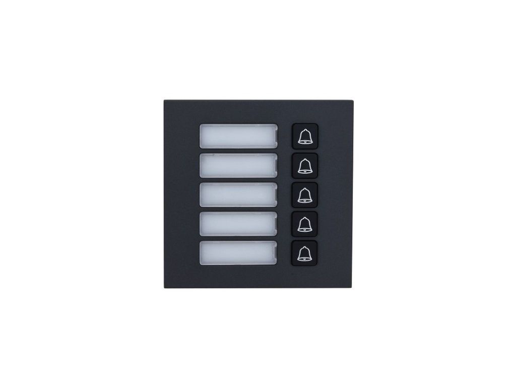 Modul s 5 tlačidlami určený pre modulárny systém IP Dahua. Modul má podsvietené menovky, hliníkové prevedenie a napájaná je z základného modulu.