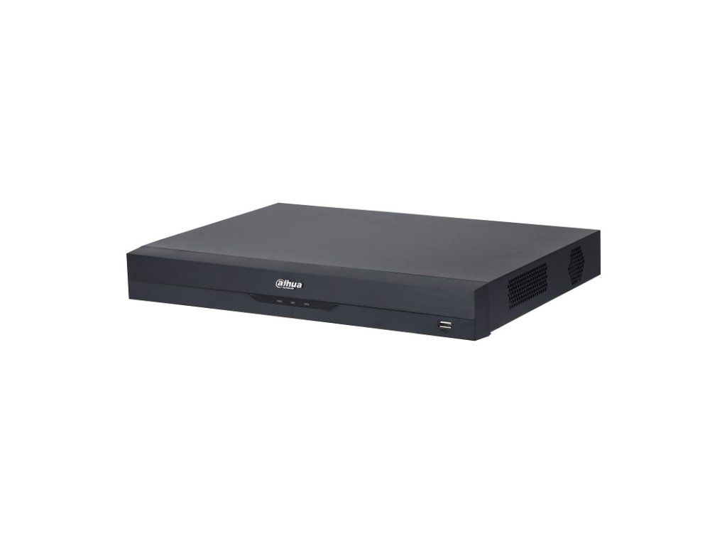 HDCVI Videorekordér 32x Analógový kanál (HDCVI, AHD, TVI, CVI a CVBS) max. rozlíšenie 5 Mpx, + 16x IP max. rozlíšenie 8 Mpx, dátový tok max. 192 Mbps (analógové kanály konvertovateľné na IP); inteligentné funkcie (niektoré AI funkcie nedostupné pri zapnutom IP rozšírení): AcuPick max. 2 kanály, IVS (perimeter Protection) max. 8 kanálov, Face Detection max. 2 kanály, Face Recognition max. 2 kanály, SMD Plus max. 32 kanálov, Video Quality Analytics max. 32 kanálov, Scene Changing max. 1 kanál, Irregular Black Block Masking max. 1 kanál; 1x HDMI (4K), 1x VGA, 1x RS-485, 1x USB 2.0, 1x USB 3.0, 1x RJ-45 10/100/1000 Mbps, 32x BNC, Audio: 32x BNC Audio, 1/1 I/O Audio RCA, 2x SATA max. 16 TB, 1x CVBS output, napájanie 12 VDC / 5A, Rozmery: 375 x 289,6 x 53 mm, hmotnosť 1,9 kg, pracovná teplota od -10°C do + 55°C