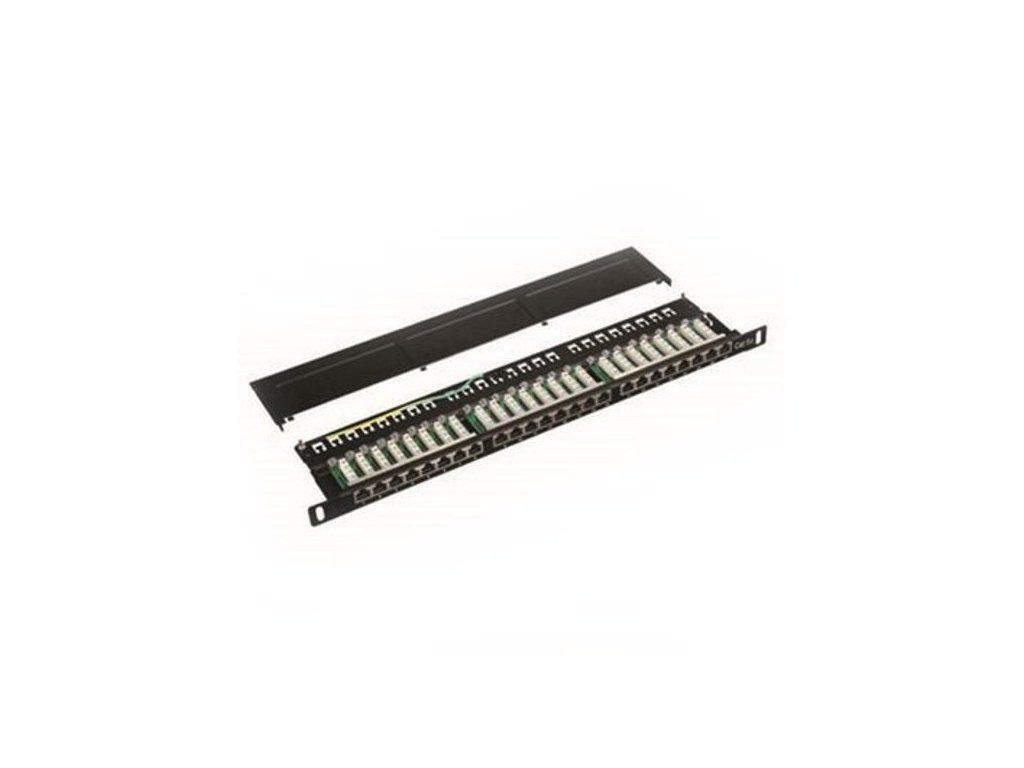Patch panel DATACOM 19" STP 24 portů cat.5e LSAStíněný patch panel určený pro montáž do 19" datových rozvaděčů nabízí 3x8 pozic zářezového pole LSA s horním zářezem a 24 stíněných portů RJ45. Výška panelu je 1U a obsahuje vyvazovací lištu.