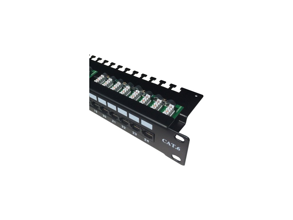 DATACOM Patch panel 19'' UTP 24 port CAT6 LSA 1U BK (3x8p)hor.zářez / VL (3094) - konstrukce panelu umožňuje snadnou instalaci - panel usnadňuje i následnou organizaci kabelů - 19'' Patch panel určený pro montáž do 19'' datových rozvaděčů. - 3 x 8 pozic zářezového pole typu LSA (krone) - 24 portů RJ45 cat.6 - výška 1U - horní zářez - vyvazovací hřeben součástí patchpanelu - barva černá - šrouby k uchycení do racku jsou přibaleny k patch paneluDodatočné parametre