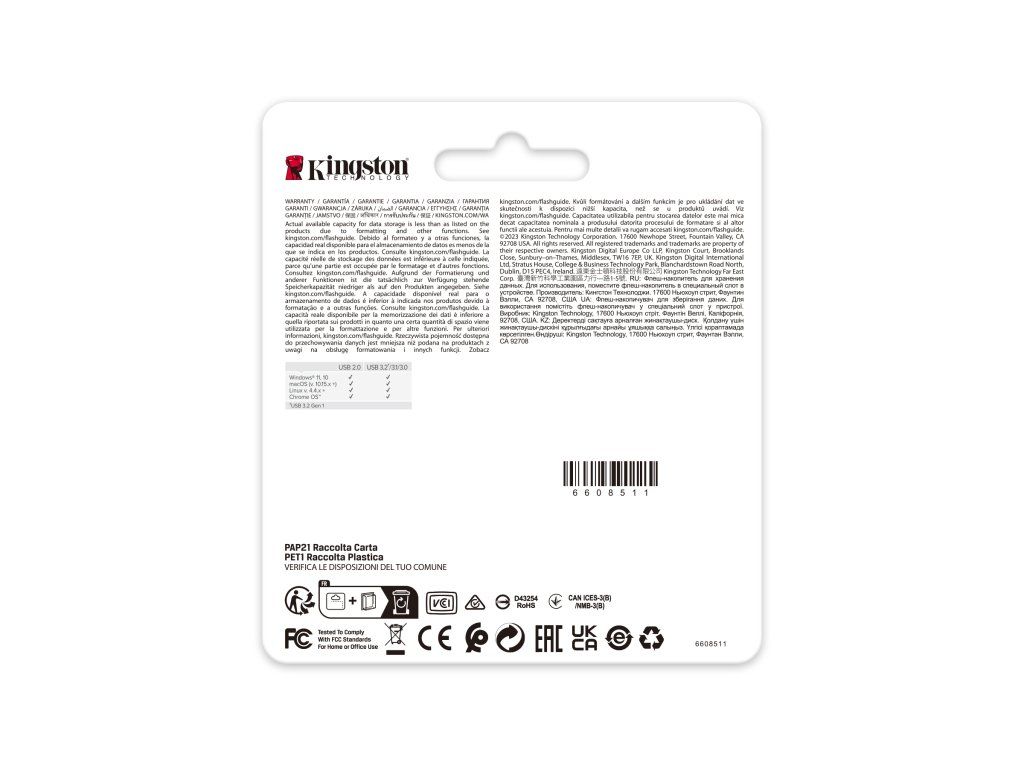 Zakuste kombinaci elegance a funkčnosti s USB 3.2 Gen 1 flash diskem DataTraveler SE9 G3, který je ideální pro ukládání a sdílení vašich dat. Objevte znovu jeho nadčasový, oceňovaný design, který je nyní vylepšený vysokým výkonem díky rychlostem až 220MB/s při čtení a 100 MB/s při zápisu(A), díky čemuž budou přenosy na hostitelská zařízení typu A rychlá a bezproblémová. (A) Rychlost se může lišit v závislosti na hardwaru, softwaru i způsobu použití. (B) Část z uvedené kapacity flash paměťového zařízení je využita pro formátování a další funkce, a proto není k dispozici pro ukládání dat. Jako taková je skutečná dostupná kapacita pro ukládání dat menší, než je uvedeno na produktech. Další informace naleznete v Průvodci flash paměťovými zařízeními od společnosti Kingston. *Rozhraní: USB 3.2 Gen1 typ A *Rychlost čtení: 220 MB/s *Rychlost zápisu: 100MB/s *Operační teplota: 0 °C ~ 60 °C *Skladovací teplota: -20°C až 85°C *Rozměry: 39 mm x 12,2 mm x 4,6 mm *Váha: 15,18g *Kompatibilita: Windows® 11, 10, MacOS (v.10.15.x +), Linux (v. 4.4.x +), Chrome OS™ *Záruka: 5 letDodatočné parametre