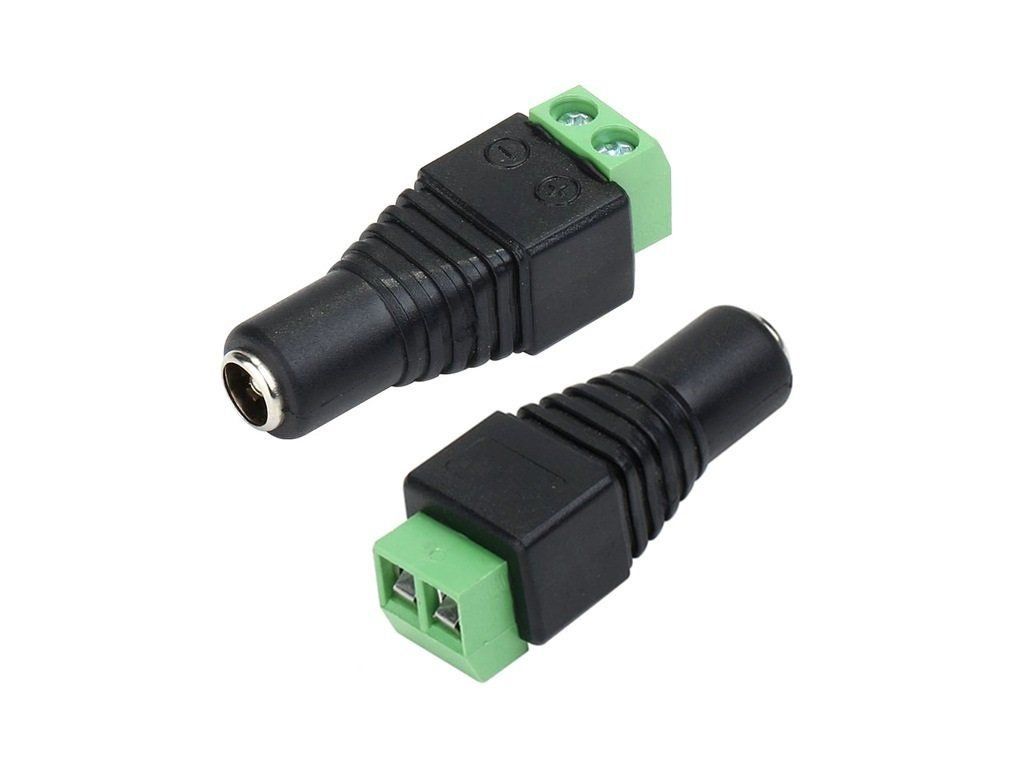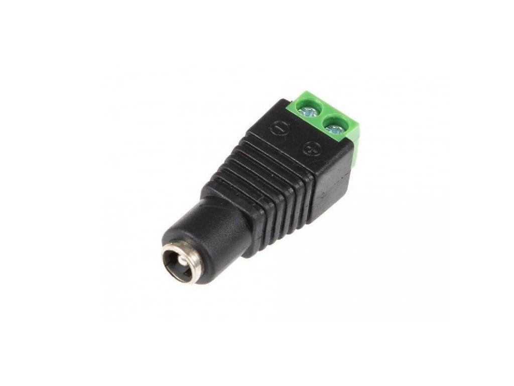 Napájecí DC konektor 2,1mm osazený svorkovnicí pro připojení napájecího kabelu od zdroje Technické specifikace: • Rozměr konektoru (vnitřní/vnější/délka): 2,1/5,5/12mm • Polarita: female • Maximální proud: 5A • Maximální napětí: 50V Redukce je vhodná např. při potřebě připojení napájecího adaptéru k LED pásku, který disponuje integrovanými kabely.Dodatočné parametre