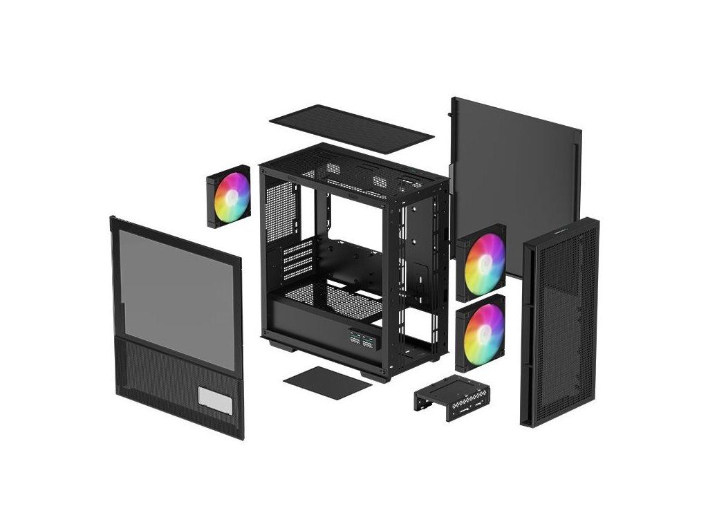 Stylová PC skříň DEEPCOOL CH360 DIGITAL, která podporuje efektivní proudění vzduchu. Disponuje předním dírkovaným panelem pro vysoký průtok vzduchu až po hybridním bočním panelem z tvrzeného skla. Konstrukční prvky spolu s osazenými ventilátory umožňuje průnik vzduchu ze všech směrů a provoz moderních a energeticky náročných komponent.