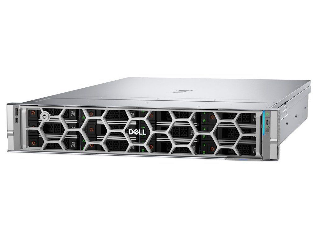 Server disponuje 32 GB DDR5 RAM s rychlostí 6400 MT/s a 960 GB SSD SATA diskem pro rychlý přístup k datům. Systém je vybaven pokročilým RAID kontrolérem PERC H965i pro ochranu dat a redundantními hot-swap zdroji 2× 1100 W s certifikací Titanium pro maximální spolehlivost a energetickou účinnost.