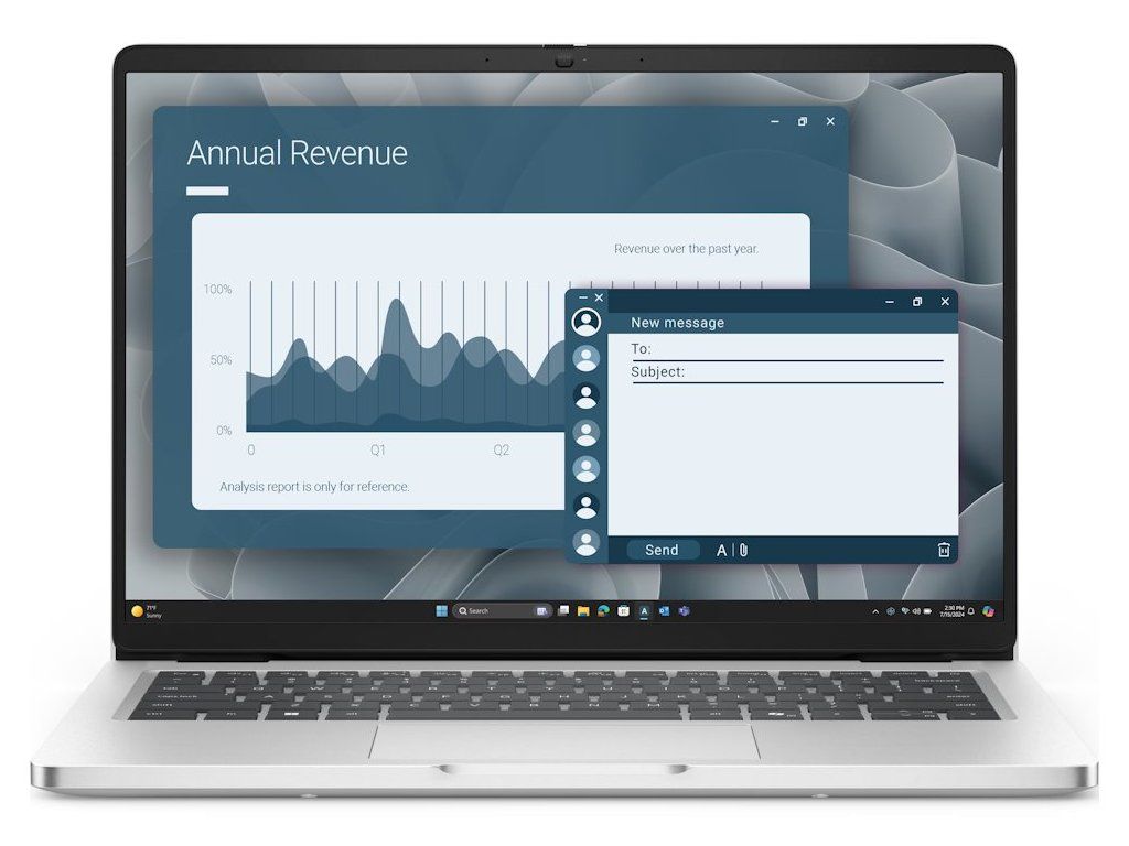 Ke slovu se umělá inteligence dostane velice jednoduše. Podsvícená klávesnice obsahuje klávesu pro spuštění AI nástroje Microsoft Copilot. CPU ve spojení se 16GB RAM DDR5 umožní svižný chod a odezvu i při náročných procesech. Do kompaktních rozměrů je vměstnán 14palcový Full HD+ displej, který produkuje ostrý obraz a je ideální pro práci i multimediální zábavu.