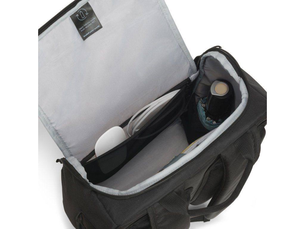 DICOTA Eco Backpack MOTION 13-15,6'' Batoh Eco MOTION nabízí ideální ochranu pro notebooky s úhlopříčkou 13 až 15,6'' díky polstrování z pěny s vysokou hustotou (HDF). Zasouvací kapsa poskytuje spolehlivou ochranu tabletům do velikosti 12,9''. Prostorná hlavní část je rozdělena tak, aby bylo možné dokumenty a příslušenství uložit odděleně. V síťovaných kapsách uvnitř brašny je místo na láhev s vodou nebo deštník. Přední kapsa má praktické menší přihrádky, takže si do ní můžete uspořádat menší předměty jako je smartphone, pera nebo nabíječky. Přídavný zip na boku batohu umožňuje rychlý přístup do hlavního prostoru. Můžete si tak zajistit, že budete mít vše potřebné vždy po ruce. Díky ergonomickému polstrování se batoh pohodlně nosí na zádech a polstrované ramenní popruhy lze pro větší pohodlí také nastavit. Batoh je vyroben z vodoodpudivého materiálu, který ochrání obsah i v deštivých dnech. Ekologický batoh MOTION je tedy ideální pro vás, pokud jste stále na cestách a chcete podpořit recyklaci PET lahví ekologickou taškou. *Vyrobeno z 13 recyklovaných PET lahví *23 litrů úložného prostoru *Polstrovaná přihrádka na notebook s pěnou s vysokou hustotou (HDF) *Výsuvná kapsa na tablet do velikosti 12,9'' *Prostorná hlavní část s přihrádkami na dokumenty a příslušenství *Přední kapsa s úložným prostorem pro mobilní příslušenství *Vnitřní síťovaná kapsa na láhev s vodou nebo deštník *Rychle přístupný zip na boku *Ergonomická polstrovaná záda *Polstrované, nastavitelné ramenní popruhy *Vodoodpudivý materiál Barva: černá Objem: 23 litrů Maximální rozměry zařízení: 385 x 30 x 265 mm Rozměry produktu: 325 x 475 x 150 mm Hmotnost: 0,75 kgDodatočné parametre