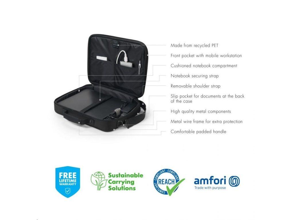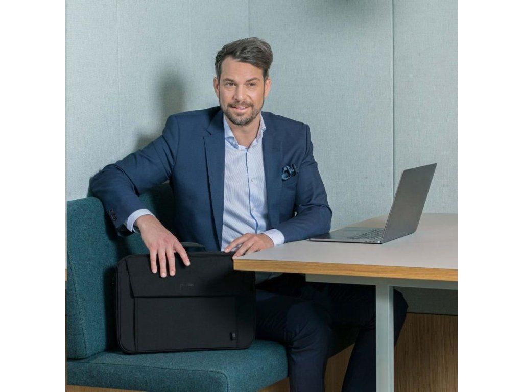 Kompaktné puzdro Eco Multi BASE ponúka ideálnu ochranu pre váš notebook vďaka polstrovanej priehradke na notebook. Puzdro plne chráni zariadenia od 13 do 14 rokov.1" a elastický popruh ich tiež upevňuje v priehradke. Základňa Eco Multi BASE zaručuje extra stabilitu a ochranu vďaka kovovému rámu, ako aj flexibilnú mobilitu vďaka ľahkej konštrukcii. Smartfón alebo iné menšie predmety, ako sú káble, perá alebo nabíjačky, si môžete uložiť do praktického predného vrecka, aby ste ich mali vždy po ruke. Vďaka rukovätiam sa kufor pohodlne prenáša a pomocou zabudovaného popruhu ho možno v priebehu niekoľkých sekúnd pripevniť ku kufru. Dá sa prenášať aj pomocou nastaviteľného ramenného popruhu. Eco Multi BASE je preto ideálny pre vás, ak ste vždy na cestách a chcete podporiť recykláciu PET fliaš ekologickým puzdrom.
