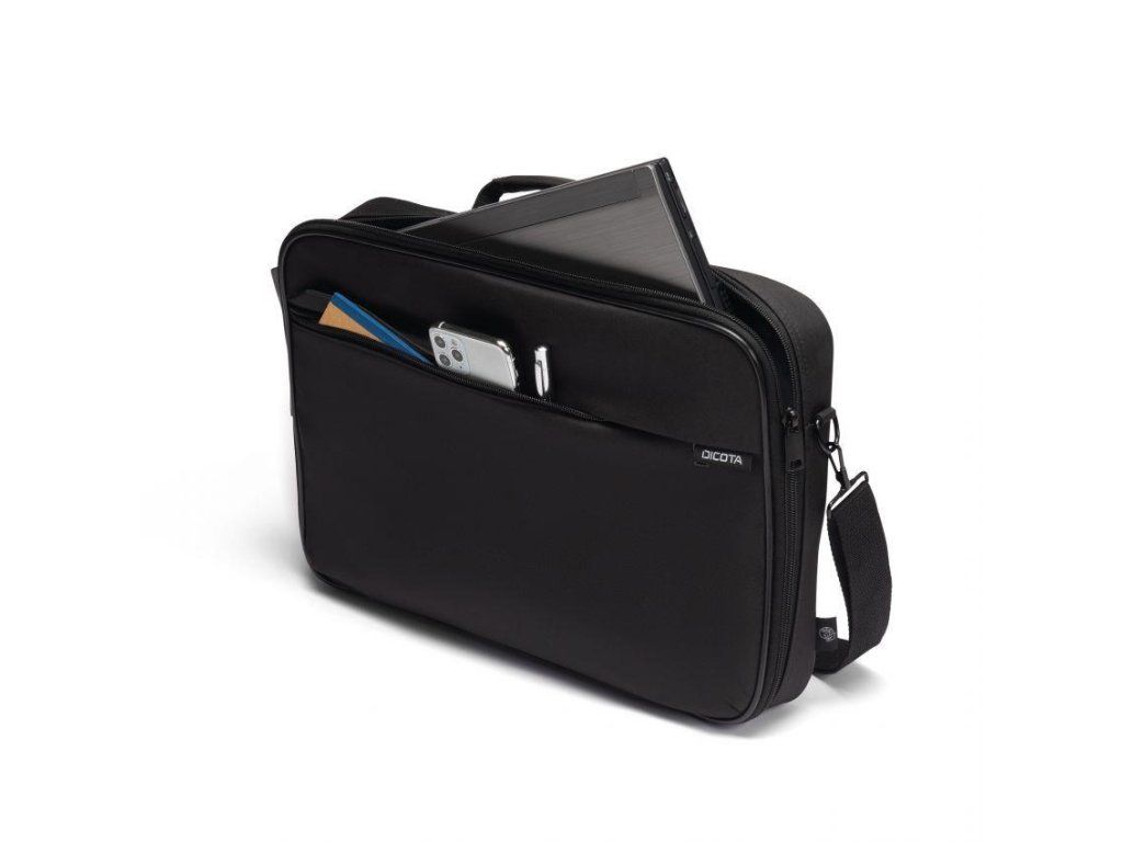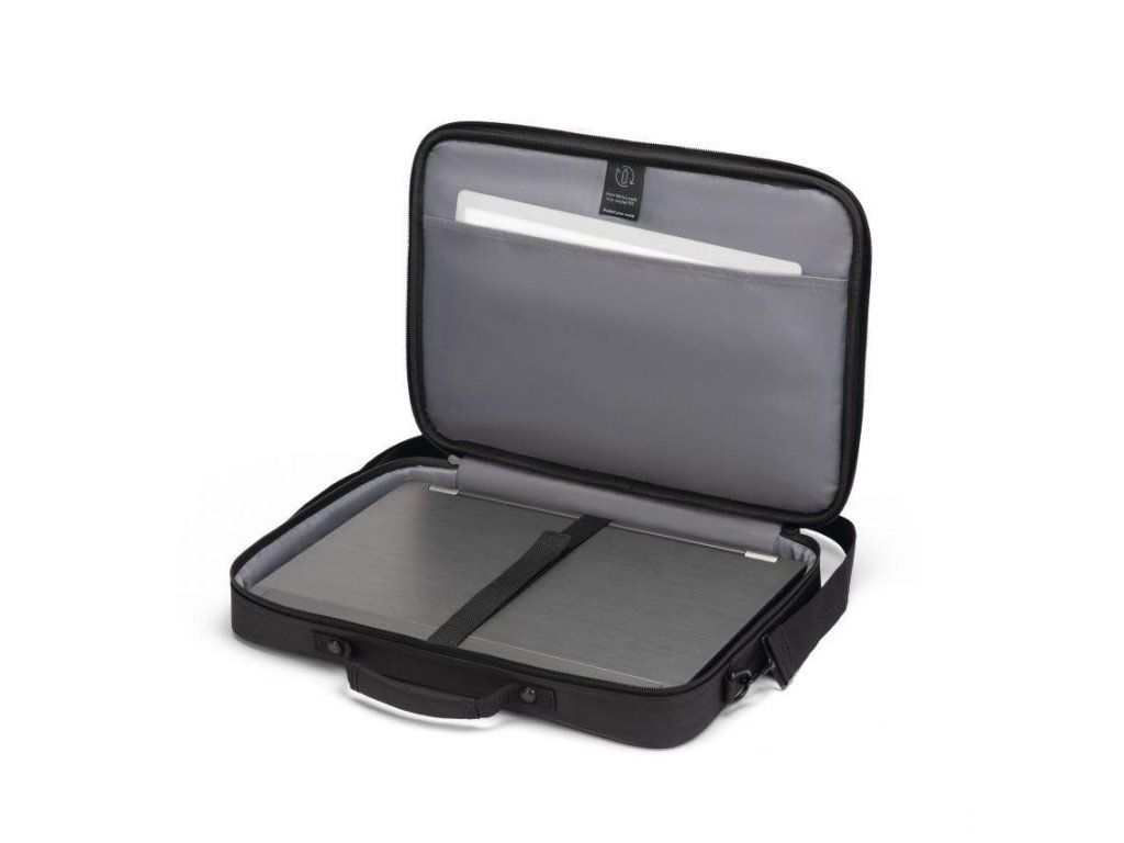 Upevňovací pás zabezpečuje bezpečné uchytenie bez vyskočenia. Dokumenty a mobilné príslušenstvo, ako sú smartphony, vizitky, perá atď., sú vždy po ruke v prednej priehradke na zips. Pohodlné nosenie zabezpečuje dĺžkovo nastaviteľný a odnímateľný ramenný popruh a rukoväť. DICOTA zdôrazňuje odolnosť rodiny ONE predĺženou päťročnou zárukou.