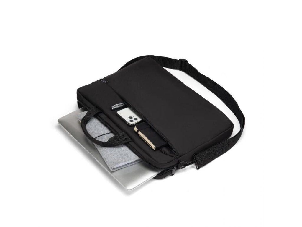 Upevňovací pásik zabezpečuje bezpečné uchytenie bez vyklznutia. Dokumenty a mobilné príslušenstvo, ako sú chytré telefóny, vizitky, pera atď. sú vždy po ruke v prednej priehradke na zips. Pohodlné nosenie zaručuje dĺžkovo nastaviteľný a odnímateľný ramenný popruh a rúčka. DICOTA zdôrazňuje odolnosť rodiny ONE predĺženou päťročnou zárukou.