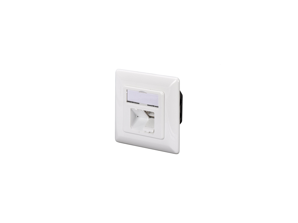 CAT 6A Class EA network outlet,shielded,2xRJ45,LSA pure white, flush mount, horizontal cable install. Future-oriented standards and high-end quality for your network. DESCRIPTION The CAT 6A network outlets from DIGITUS® are design compatible with common switch programmes. It is certificated to CAT 6A ANSI/TIA 568 and ISO/IEC 11801, EN 50173 and contains 2 shielded RJ45 sockets. The cable installation takes place via LSA strips, color coded acc. EIA/TIA 568 A & B. TECHNICAL DETAILS Transmission property: Category 6A Area of application: Up to 500 MHz, 10GBase-T Norms: ISO/IEC 11801 2nd Ed., EN 50173-1, EIA/TIA 568-C, 802.3af, 802.3at PoE+ General properties: Suitable for installation in trunking, surface and flush mount RJ45 female, 8P8C Cable installation via LSA strips, color coded according to EIA/TIA 568 A & B Integrated strain relief for installation cables Complete shielding of RJ45 sockets and LSA strips due to zinc die-cast housing Strain relief 40°-angled female for patch cord Central plate: 50 x 50 mm Frame: 80 x 80 mm Central plate with integrated dust covers Design compatible to common switch ranges Technical properties: Housing material: Die-cast metal RJ45 female material: ABS UL 94V-0 RJ45 female contact: Tinned phosphor bronze, 0.5 µ gold-plated contact RJ45 shielding: Tinned bronze LSA termination clamp: Krone LSA+, UL 94V-2, zinc plated phosphor bronze Conductor plate: FR4, UL 94V-0 Physical properties: Insertion force: 30N max. (IEC 60603-7-5) Retention strength: 7.7 kg between jack and plug Operation temperature: -20° C to +70 °C (ISO/IEC 11801, EN 50173-1, ANSI/TIA/EIA 568 C) Mating cycles female: > 750 acc. to ISO/IEC 11801, IEC 60603-7-5 Clamp: > 200 acc. to ISO/IEC 11801, IEC 60603-7-5 IDC wire size: 22 – 26 AWG solid and stranded conductor Insulation resistance: > 500 MOhm Contact resistance: < 20 MilliOhm Dielectric strength: 1000 VDC (Contact/Contact), 1500 VDC (Contact/Ground) Not compatible with R&M freenet patch cords Colour: White RAL9003Dodatočné parametre