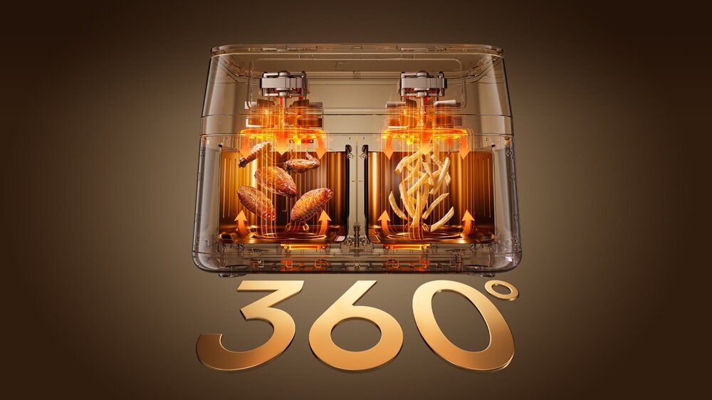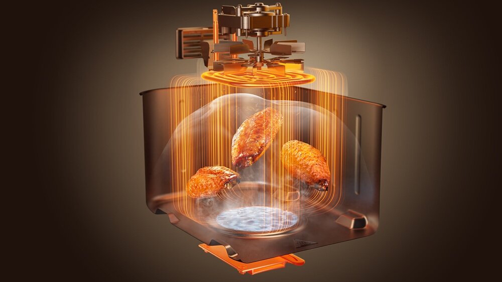 Horné a spodné ohrievacie telesá s 360° obklopujúcou cirkuláciou horúceho vzduchu pre chrumkavý výsledok bez potreby obracania