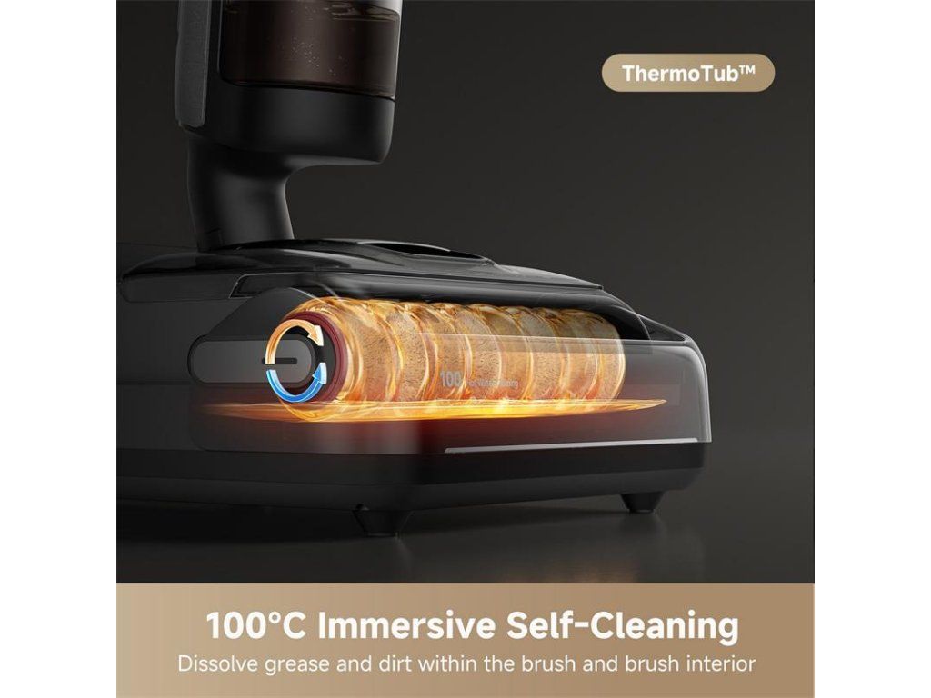 Počas samočistenia, ThermoTubTM ponorí a opláchne kefku so 100°C horúcou vodou a ticho ju vysuší vysokorýchlostným prudom vzduchu o teplote 90 °C už za 5 minút.