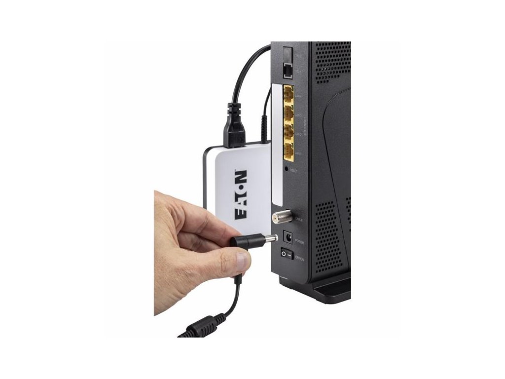 Nech už pracujete z domova, používate inteligentné domáce zariadenie alebo bezpečnostný systém, ktorý chráni vás aj vašu rodinu, UPS 3S Mini je navrhnutý tak, aby ste mohli byť neustále pripojení. Vďaka svojmu vysoko kompaktnému, tichému a štýlovému designu 3S Mini perfektne zapadne do vašej domácnosti alebo pracovného prostredia. slúžil na napájanie jednosmerných zariadení. K dispozícii máte štyri výstupné napätia, a to 9, 12, 15 a 19 V. Okrem toho nechýbajú štyri rôzne DC konektory. To výrazne zvyšuje kompatibilitu zdroja, ku ktorému ľahko pripojíte celý rad prístrojov. Pomocou záložného zdroja Eaton UPS 3S Mini môžete ľahko a rýchlo poskytnúť energiu svojim pracovným zariadeniam. To oceníte v prostredí, kde potrebujete mať istotu zálohovania dôležitých dát aj v prípade náhleho výpadku elektrického prúdu. Zdroj má v sebe zabudovanú batériu, ktorá mu zaistí až päť hodín prevádzky v závislosti na pripojenom zariadení. Päť hodín výdrže sa dočkáte pri pripojenej IP kamere, pri TV prehrávači je výdrž štyri hodiny, pri Wi-Fi extendere dve hodiny a pri internetovej bráne zhruba 80 minút.Parametre a špecifikácia: