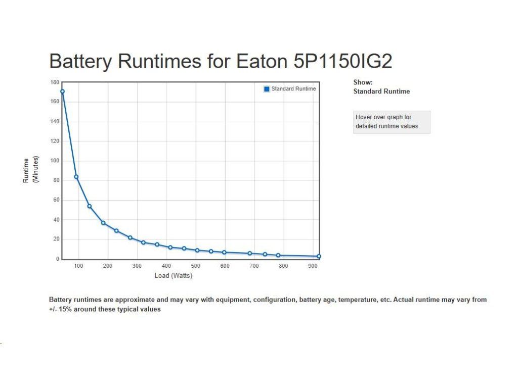 - UPS 5P môže merať energetickú spotrebu v kWh, ktorú je možné sledovať buď na LCD alebo pomocou softvéru Eaton Intelligent Power Software Suite.
