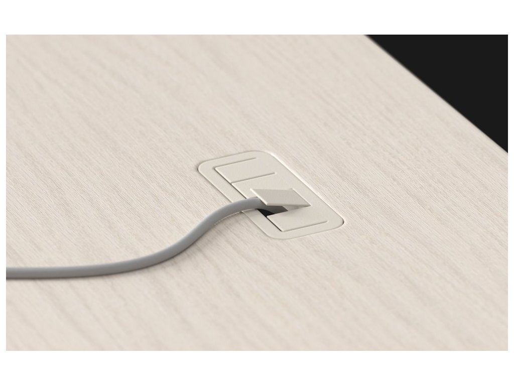 - Pogumovaná průchodka pro kabely integrovaná v rovině s deskou.