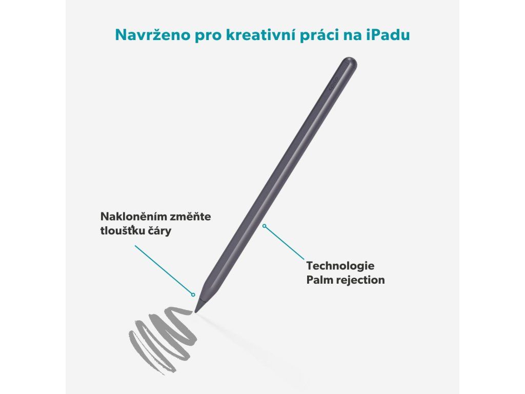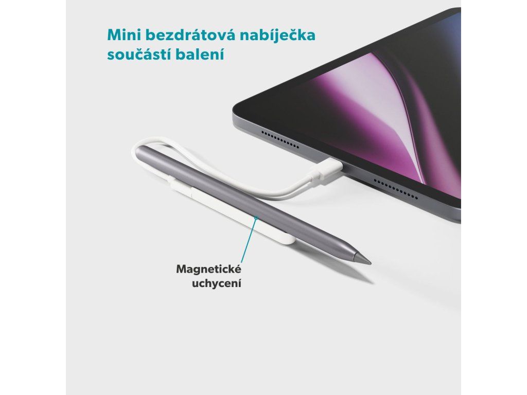 Přesnost, na kterou se můžete spolehnout Epico Stylus Pen byl navržen pro kreativní a přesnou práci na iPadu – od kreslení a psaní až po úpravu fotografií či tvorbu prezentací. Díky technologii Palm Rejection můžete při práci pohodlně opřít ruku o displej bez nežádoucích dotyků, zatímco podpora náklonu dovoluje měnit tloušťku čáry pouhým nakloněním pera – ideální pro stínování, kaligrafii nebo skicování. Navigační tlačítko zajišťuje rychlé ovládání – jedním kliknutím se vrátíte na domovskou obrazovku, dvojitým zobrazíte poslední aplikace a podržením pero zapnete či vypnete. Okamžité připojení a mimořádná výdrž Li-Pol baterie poskytuje až 9 hodin nepřetržitého používání, přičemž vestavěný indikátor umožňuje snadno sledovat stav nabití. Díky rychlému Bluetooth připojení se stylus spojí bez prodlevy s vaším iPadem a je ihned připraven k použití. Součástí balení je jeden náhradní hrot a bezdrátová nabíjecí podložka. Magnetické bezdrátové nabíjení je dostupné pouze pro iPady vydané do roku 2023.* *Bezdrátové nabíjení je kompatibilní s: iPad Pro 12.9” (3/4/5/6), iPad Pro 11” (1/2/3/4), iPad Mini (6), iPad Air (4/5).Dodatočné parametre