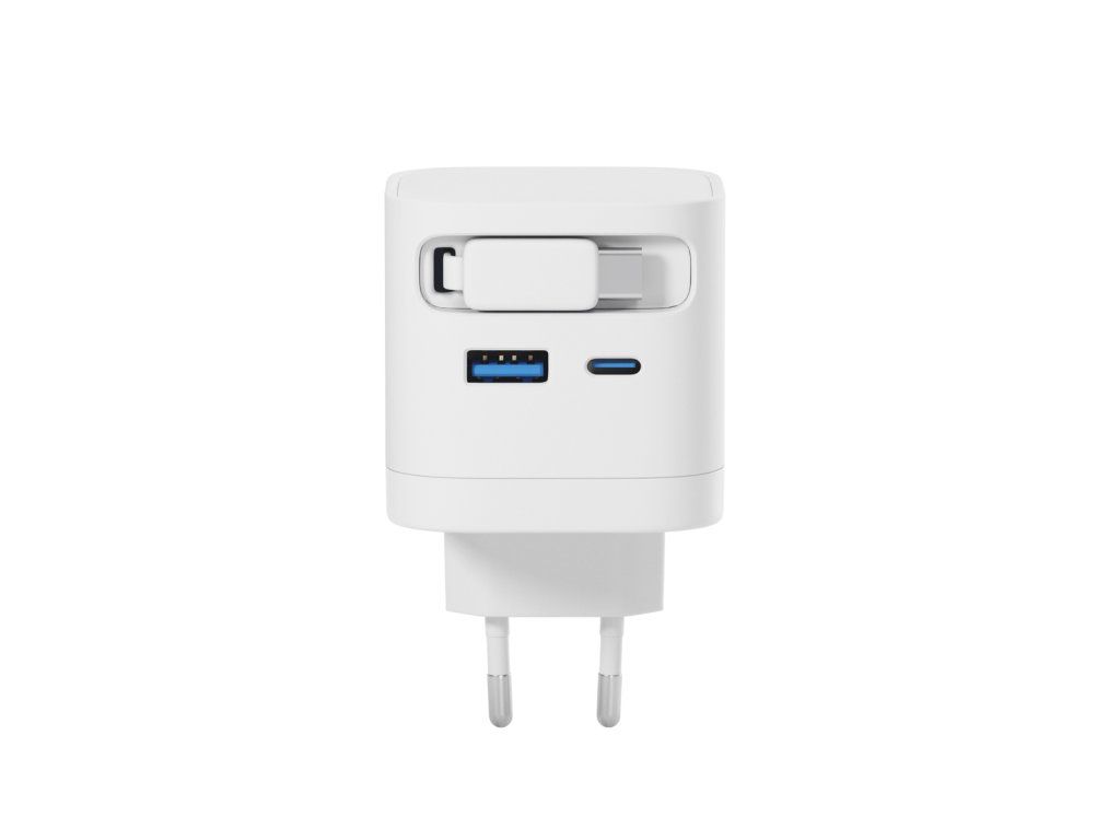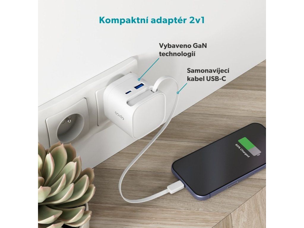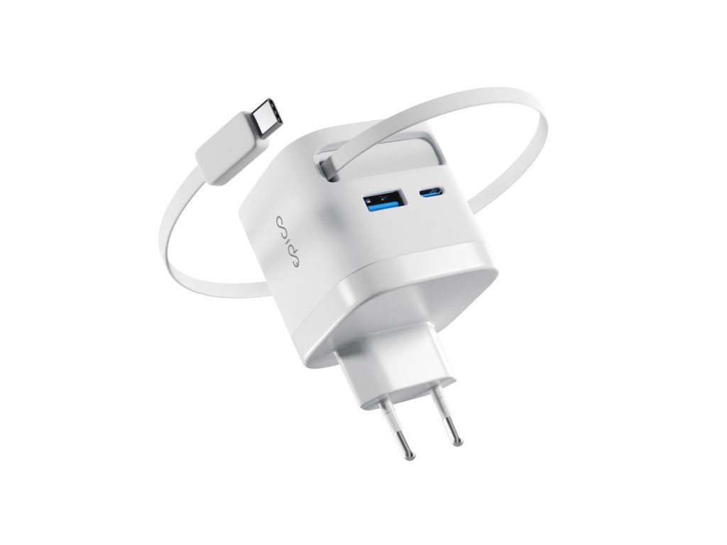 Praktická 2v1 nabíječka s vestavěným kabelem Epico UltraBoost EA65c přináší chytré a elegantní řešení pro každodenní nabíjení. Už žádné ztracené kabely – integrovaný USB-C kabel o délce 70 cm se snadno zasouvá přímo do těla adaptéru a je tak vždy po ruce. Magnetický konec se pevně přichytí na bok nabíječky, takže se kabel nikdy nezamotá. Vysoký výkon 65 W zajistí rychlé a efektivní nabíjení telefonu, tabletu, notebooku i další náročnější elektroniku. Nabíjejte až 3 zařízení současně Vestavěný USB-C kabel, port USB-C a USB-A umožňují nabíjet až tři zařízení zároveň. Technologie GaN zajišťuje vysokou účinnost a menší zahřívání pro pohodlné každodenní používání. Díky kompaktnímu a lehkému designu se skvěle hodí na cesty, do kanceláře i na domácí použití. O bezpečnost se starají vestavěné bezpečnostní prvky, které chrání proti zkratu, přepětí, přetížení a přehřátí, takže máte vždy jistotu bezrizikového nabíjeníDodatočné parametre