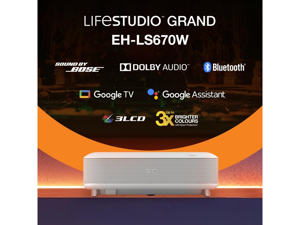 Epson Lifestudio Grand – EH-LS670W diamantová biela, 4K PRO-UHD, 3600lm, HDMI, USB, Google TV, 240Hz V11HB82040