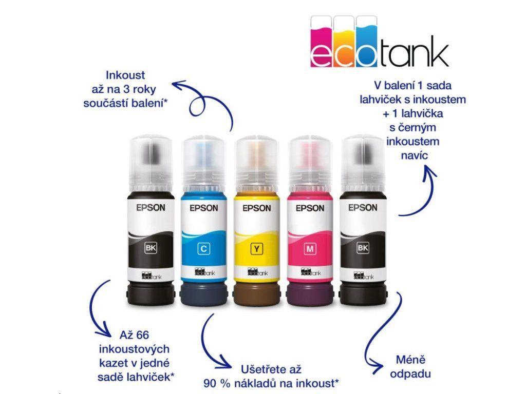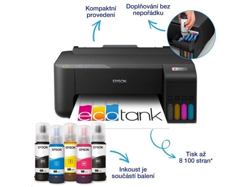 Skutočné rozlíšenie tlačiarne (v DPI):1440x5760; Tlačové technológie:Atramentový tankový systém; Rozhranie tlačiarne:USB; Maximálny formát tlače/média:A4; Štandardný počet vstupných zásobníkov:1; Maximálny počet vstupných zásobníkov:1; Funkcie:Farebná tlač, Tlač bez okrajov, Oddelené náplne