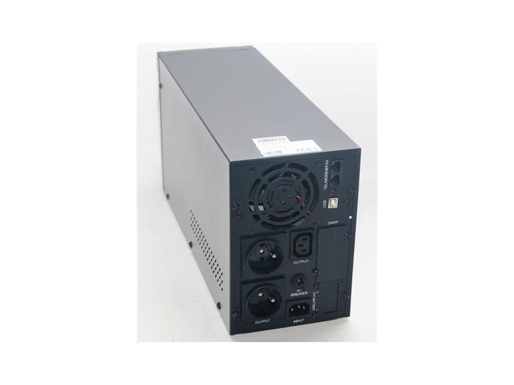 Záložný zdroj EA620 2000VA s výstupným priebehom sínus. Zdroj je riadený mikroprocesorom a je vybavený komunikačným rozhraním USB. K tomu slúži dodávaný softvér pre desktopové OS MS Windows. Zariadenie disponuje aj prepäťovou ochranou a ochranou telefónnej linky s RJ-45 konektorom. Na čelnom paneli sa nachádzajú tlačidlá ON a OFF a 4 indikačné LED. Na LCD displeji sú zobrazované:- Pri prevádzke zo siete - Uin, Uout, stav batérie v %, zaťaženie výstupu v %