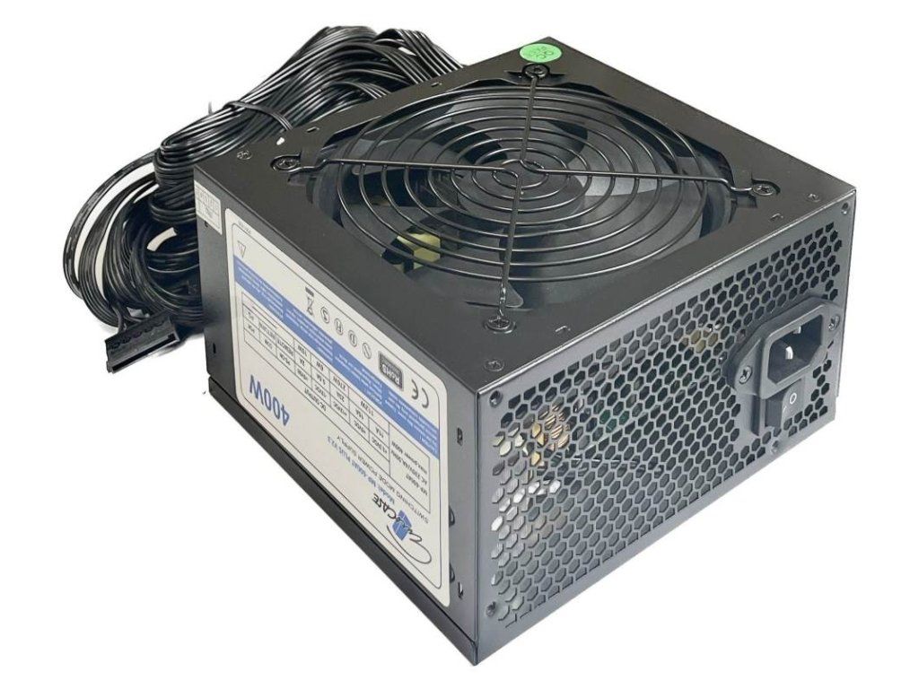 Napájací zdroj ATX značky Eurocase s výkonom 400W. Je osadený 120mm ventilátorom a pasívnym PFC (Power factor correction). Otáčky ventilátora sú riadené teplotnou reguláciou. Zdroj spĺňa požiadavky na elektrickú bezpečnosť a elektromagnetickú kompatibilitu. Zdroj vyhovuje aj smernici 2005/32/EÚ = príkon v pohotovostnom režime.