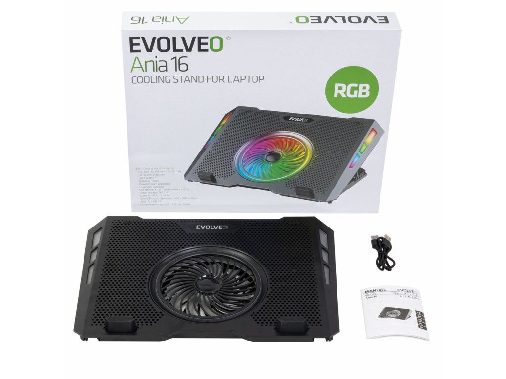 EVOLVEO Ania 16, chladiaca podložka pod notebook, 5x ventilátor, RGB podsvietenie ANIA16