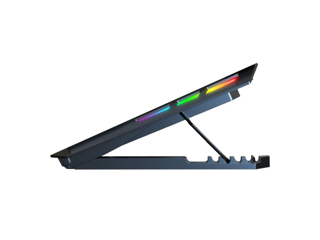 • Pro notebooky 10-17'' • 1x125mm ventilátor • 4x70mm ventilátor • 10 RGB barevných módů • Výškově polohovatelná (5 poloh) • Regulace rychlosti otáček ventilátorů