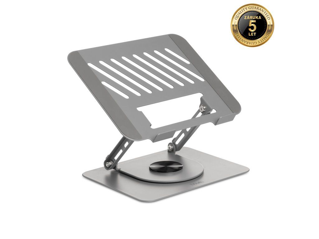• Kompatibilní se všemi notebooky a tablety do velikosti 17'' • Záruka 5 let • Umožňuje stabilní a bezpečné zvýšení displeje notebooku do výšky očí • Robustní ocelová UltraSteel konstrukce pro: 1) maximální torzní stabilitu stabilitu 2) dlouhou životnost • Základna otočná o 360° • Mikroaretace základny • Čtyřkloubová paralelogramová konstrukce • Ideální pro hraní her i kancelářskou práci • Pasivní systém chlazení: 1) pro efektivním odvod tepla z notebooku 2) zabraňuje přehřátí notebooku při hraní her a náročnější práci 3) s optimalizovanou cirkulací vzduchu díky ventilačním průduchům 4) 10 příčných průduchů včetně extra velkého chladícího otvoru 13,4 × 4,9 cm • Tři dimenze nastavení: 1) nastavitelný úhel sklopení 2) nastavitelný úhel otočení (360°) 3) nastavitelná výška v rozsahu 3-16 cm • Ergonomicky polohovatelná konstrukce garantuje: 1) správně držení těla 2) zmírnění bolesti zad a očí • Skládací konstrukce ideální pro cestování • Nastavení do požadovaného úhlu nevyžaduje povolení ani opětovné utažení šroubů • Silikonové opěrky pro spodní hranu notebooku: 1) chrání spodní hranu notebooku proti poškrábání 2) zabraňují sklouznutí notebooku • Dvojice postranních silikonových podložek: 1) chrání spodní stranu notebooku proti poškrábání 2) eliminují nechtěný pohyb notebooku při psaní • Čtyři protiskluzové silikonové patky základny pro maximální stabilitu na stole • Max. nosnost: 5 kg • Rozměr základny (š × h): 24 × 19 cm • Rozměr plochy pro notebook (š × h): 26 × 21 cm • Výška plochy pro notebook v nejnižší/nejvyšší poloze: 3/16 cm • Hmotnost: 1,76 kgOBSAH BALENÍ :
