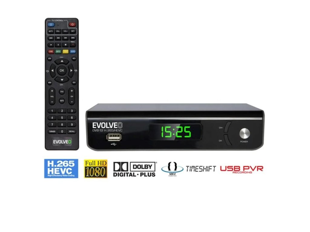 - HD DVB-T2 H.265/HEVC rekordér EVOLVEO Omega S3