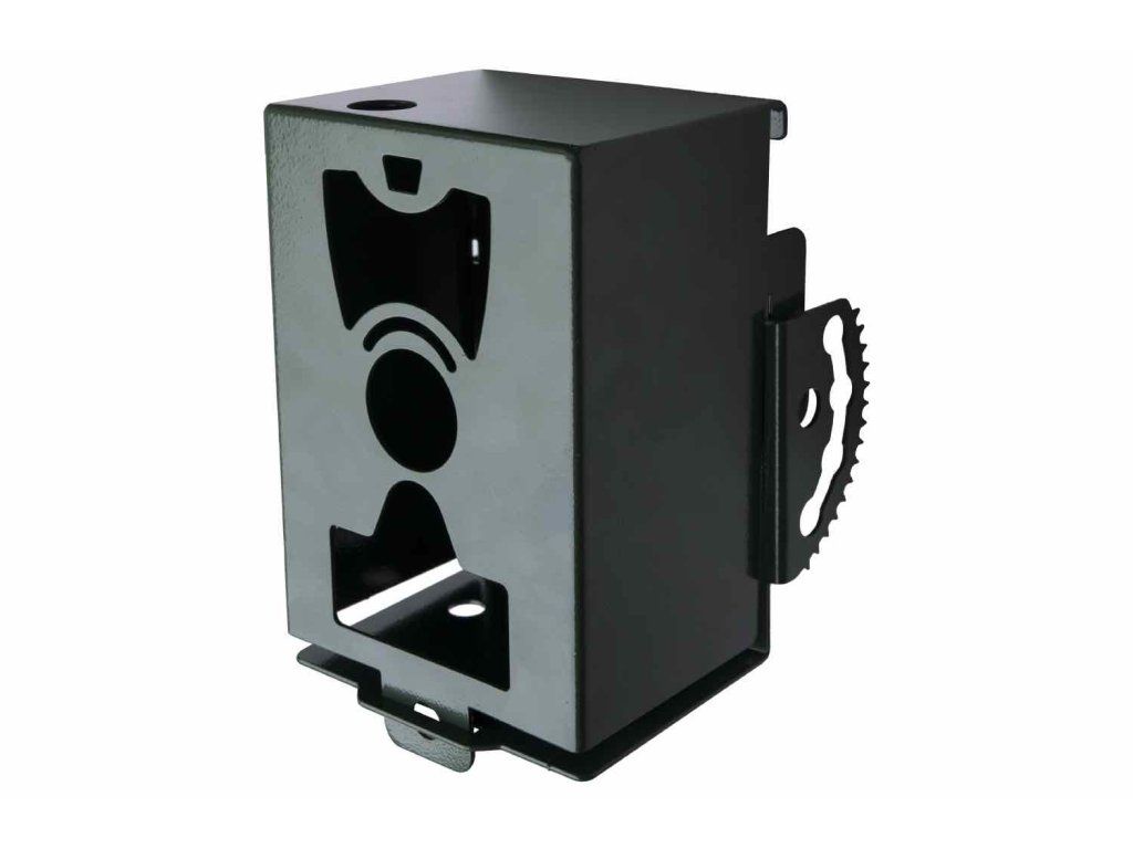 Uzamykateľný kovový obal pre fotopasť EVOLVEO StrongVison, ktorý ochráni fotopasť pred prípadným krádežou alebo poškodením vandali
