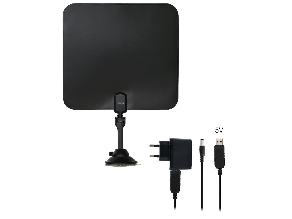 Elegantní pokojová anténa pro příjem digitální TV. Zesilovač antény lze napájet díky USB kabelu dvěma způsoby. Napájení pomocí adaptéru 230V a dále napájení z USB konektoru. Druhý způsob ocení uživatel, který chce sledovat TV např. na NB pomocí USB tuneru. Anténu lze přilepit sadou 3M oboustranných lepících pásek na zeď, nábytek, nebo umístit do podstavce. Podstavec je vybaven přísavkou.SPECIFIKACE: